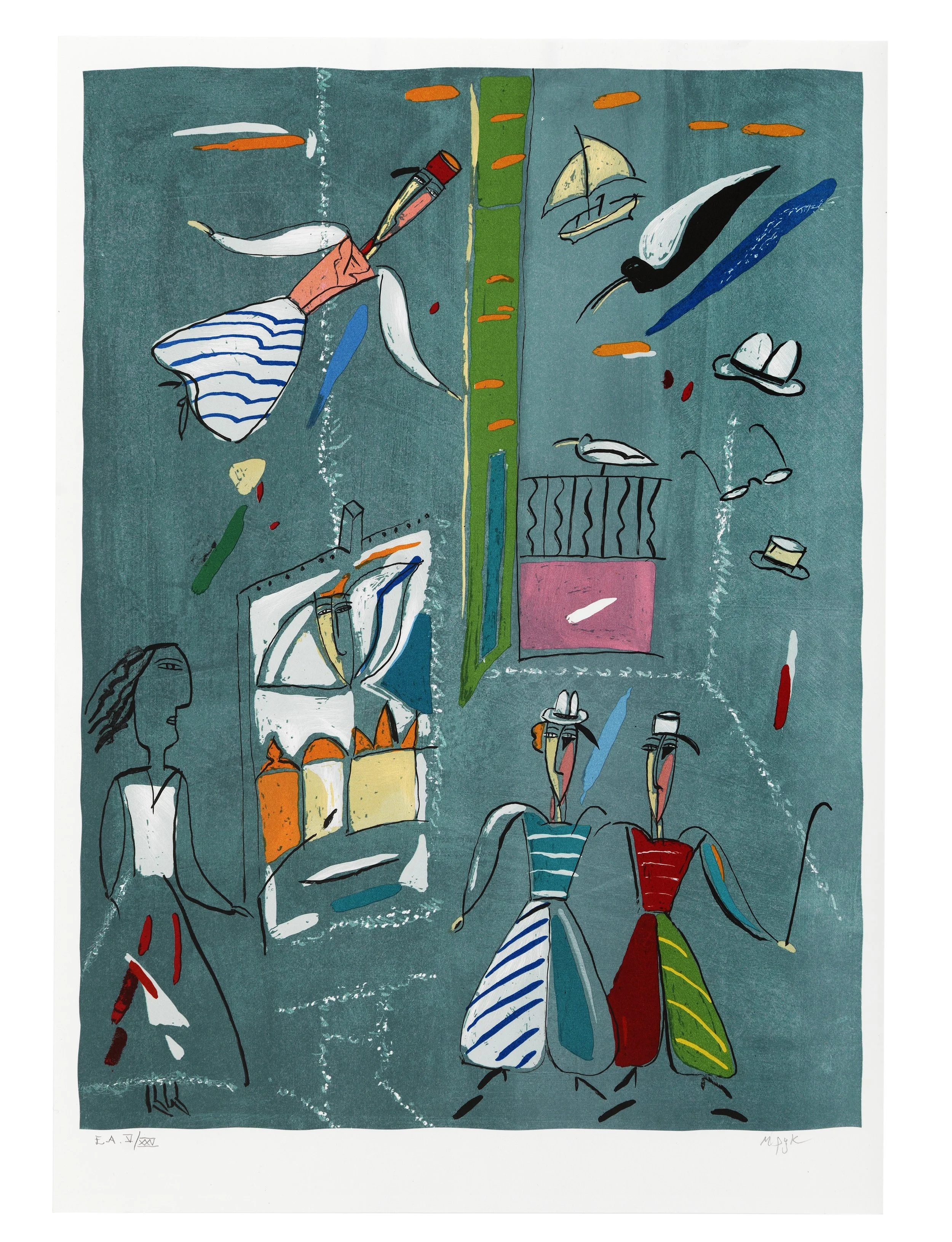Litografisk portfölj innehållande 2 litografier